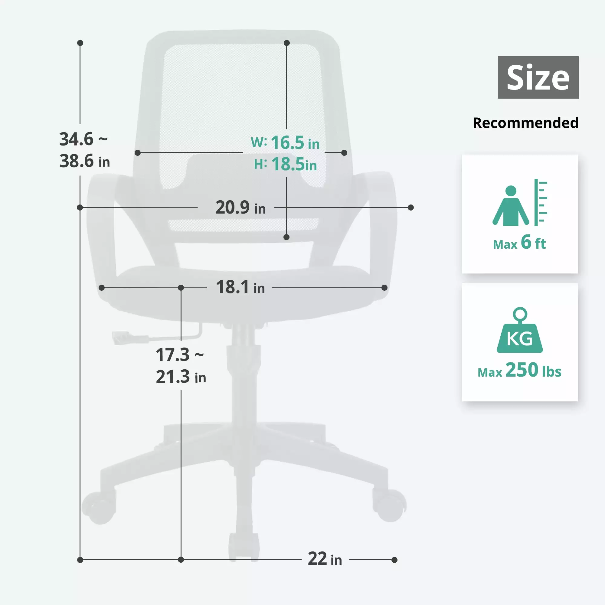 - Seat Dimensions : 18.1″x 19.68″