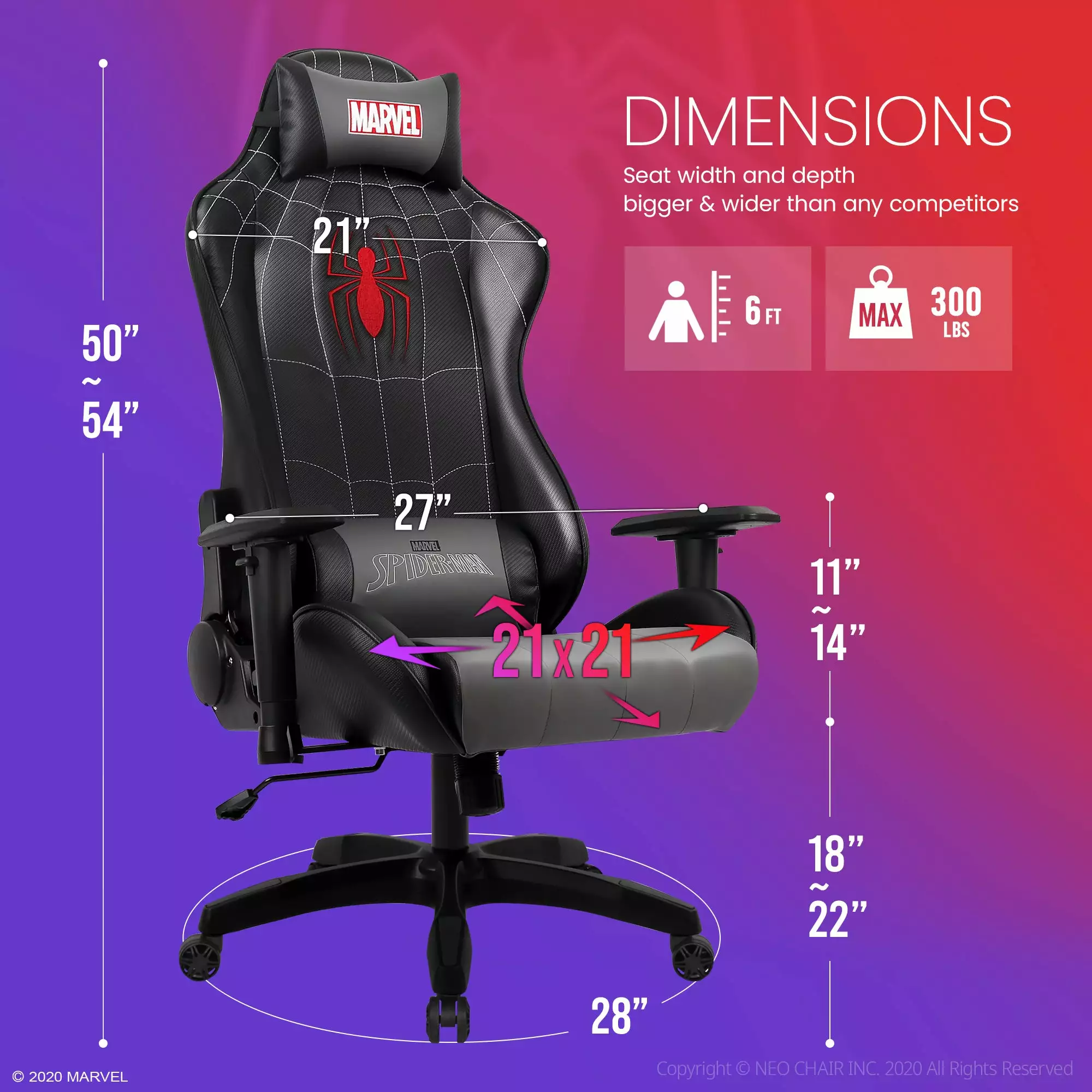 Ergonomically designed for all-day comfort and manufactured with 1.5mm steel frames to last years. Our Marvel-licensed products are born to be your go-to gaming chair.